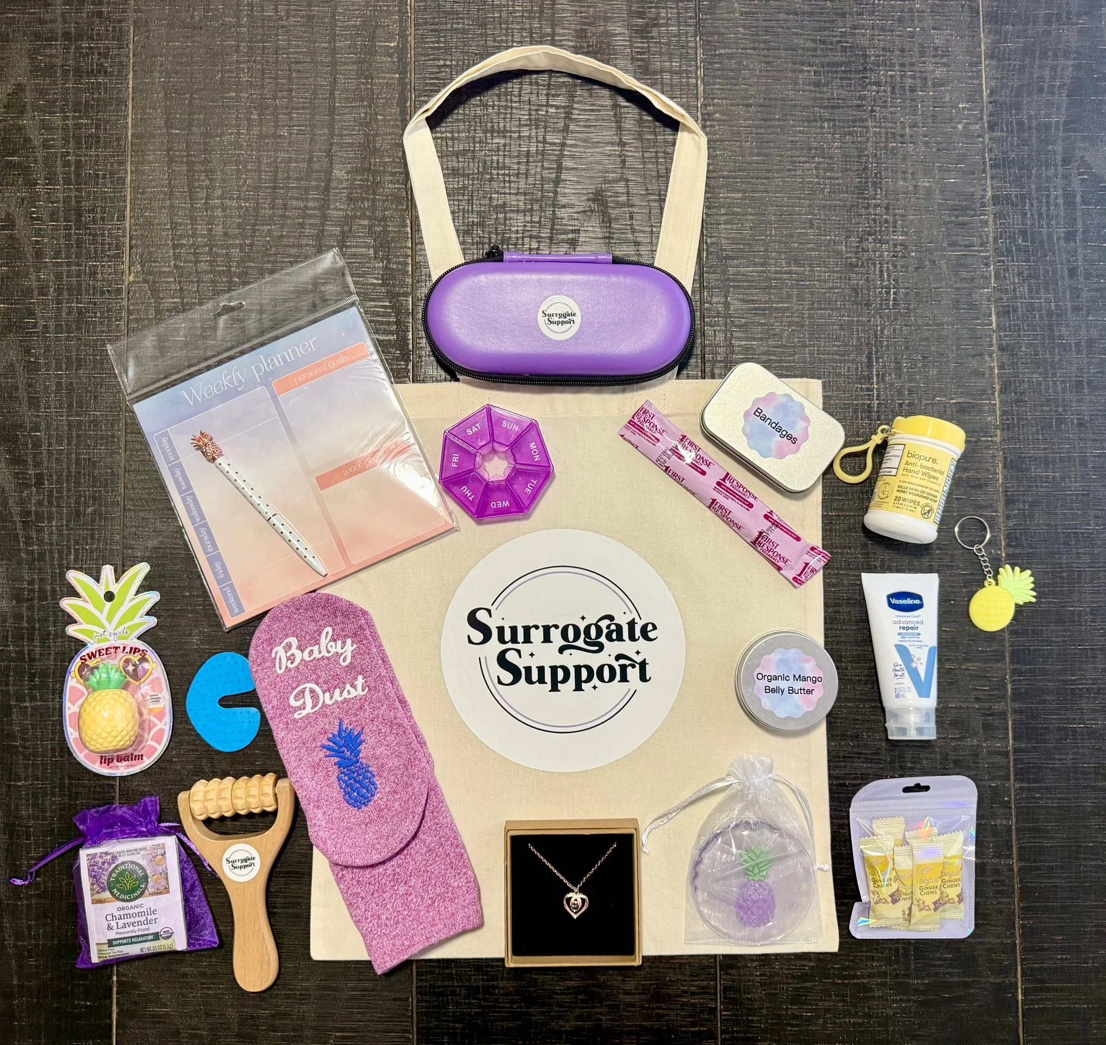 This kit was thoughtfully curated to support you as medications begin and the journey toward transfer approaches. Many surrogates juggle daily life, appointments, and medication schedules all at once, so this box focuses on organization, comfort, and encouragement during this important phase.